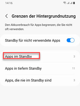 3. Deaktivieren Sie Apps im Standby auf SamSung.