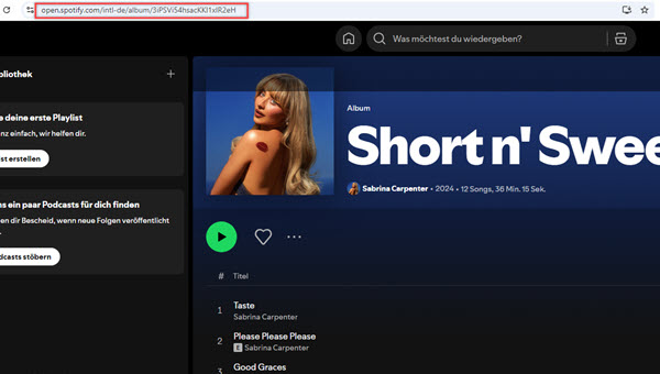 Schritt 2 Suchen Sie die Spotify Songs, Playlists oder Alben, die Sie herunterladen möchten, dann kopieren Sie die URL im Browser.